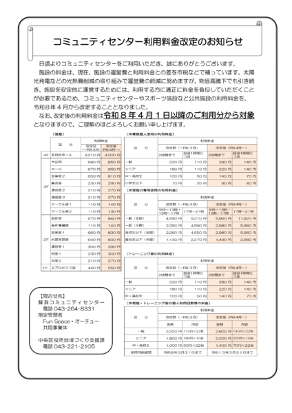蘇我コミュニティセンター令和8年度4月以降の料金改定について(PDF)