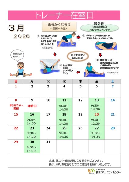 2026年3月トレーナー在室日