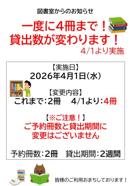 【お知らせ】貸出冊数が2冊→4冊に変わります!