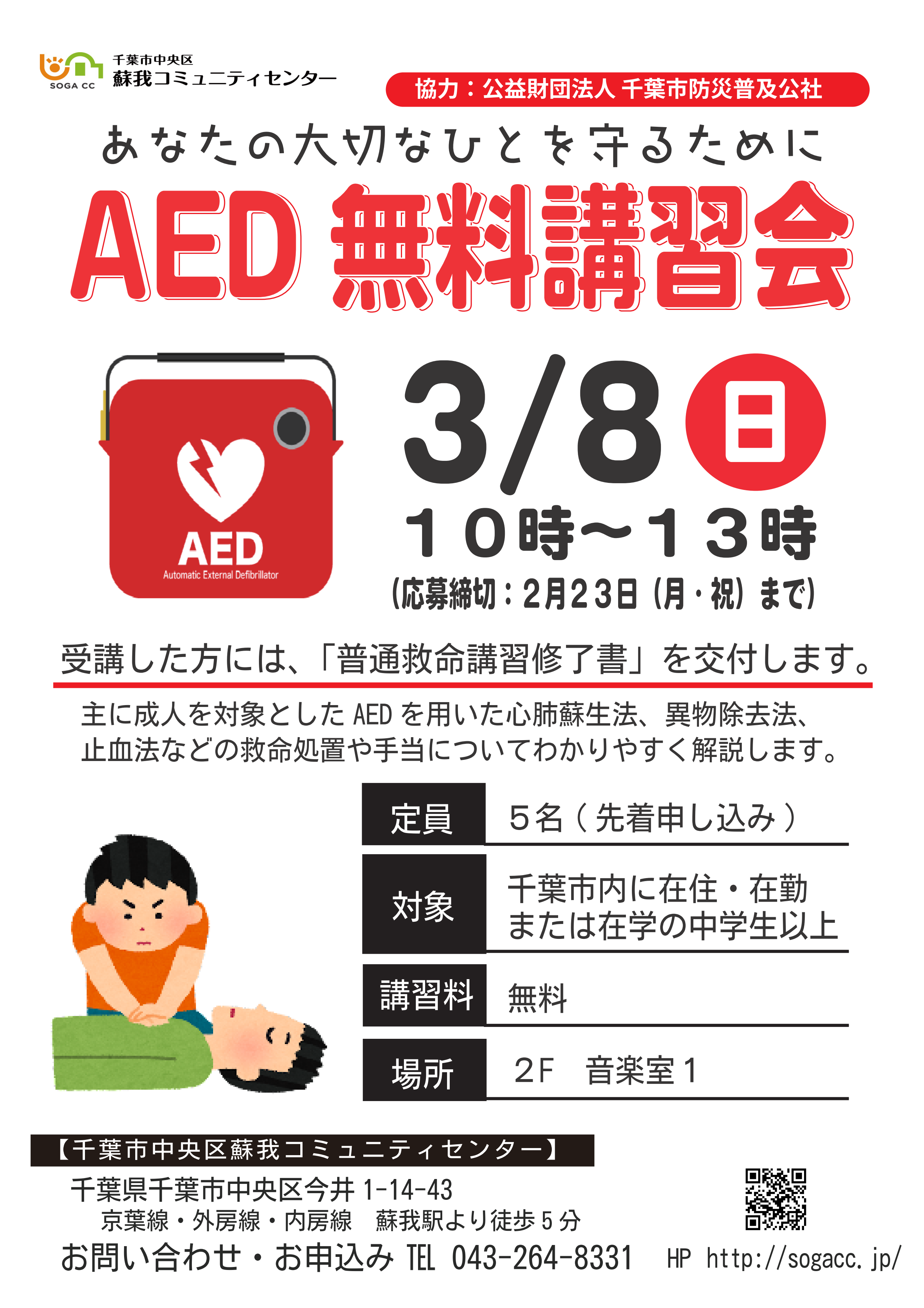 【2026年3月8日(日)】AED無料講習会 あなたの大切なひとを救うために