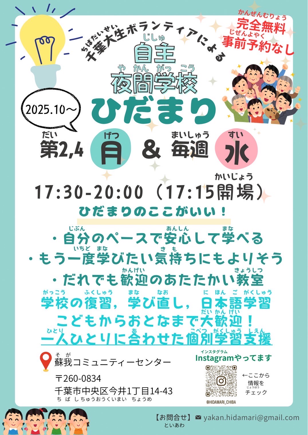 かんぜんむりょう!よやくもいりません! ちがだいがくのがくせいボランティアといっしょにべんきょうし…