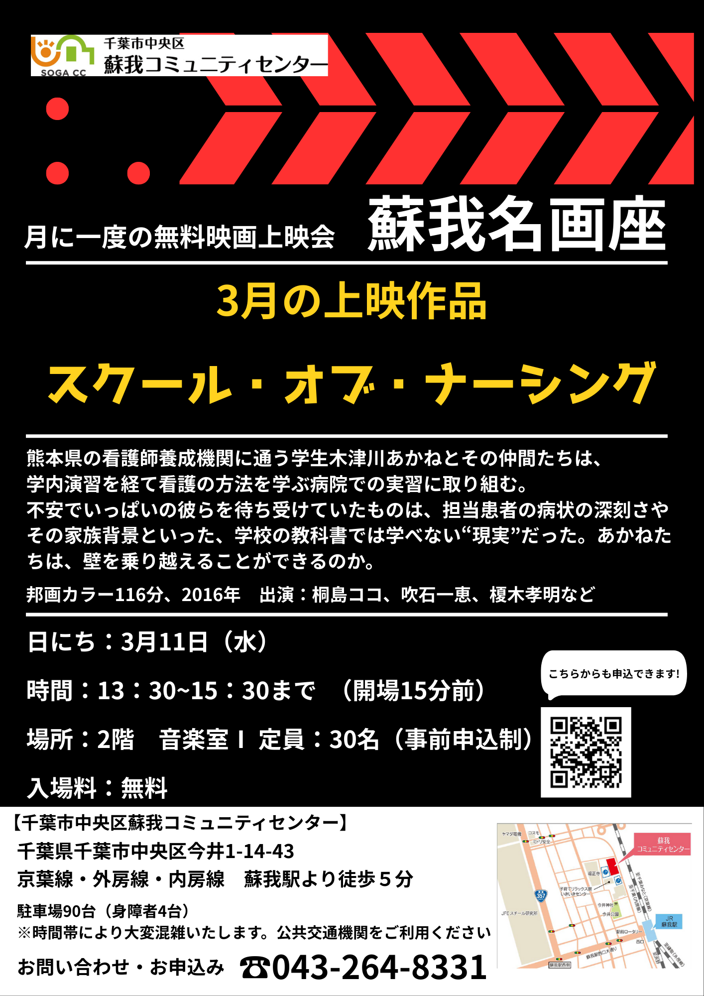 月に一度の無料映画上映会【蘇我名画座】 「スクール・オブ・ナーシング」 邦画カラー116…