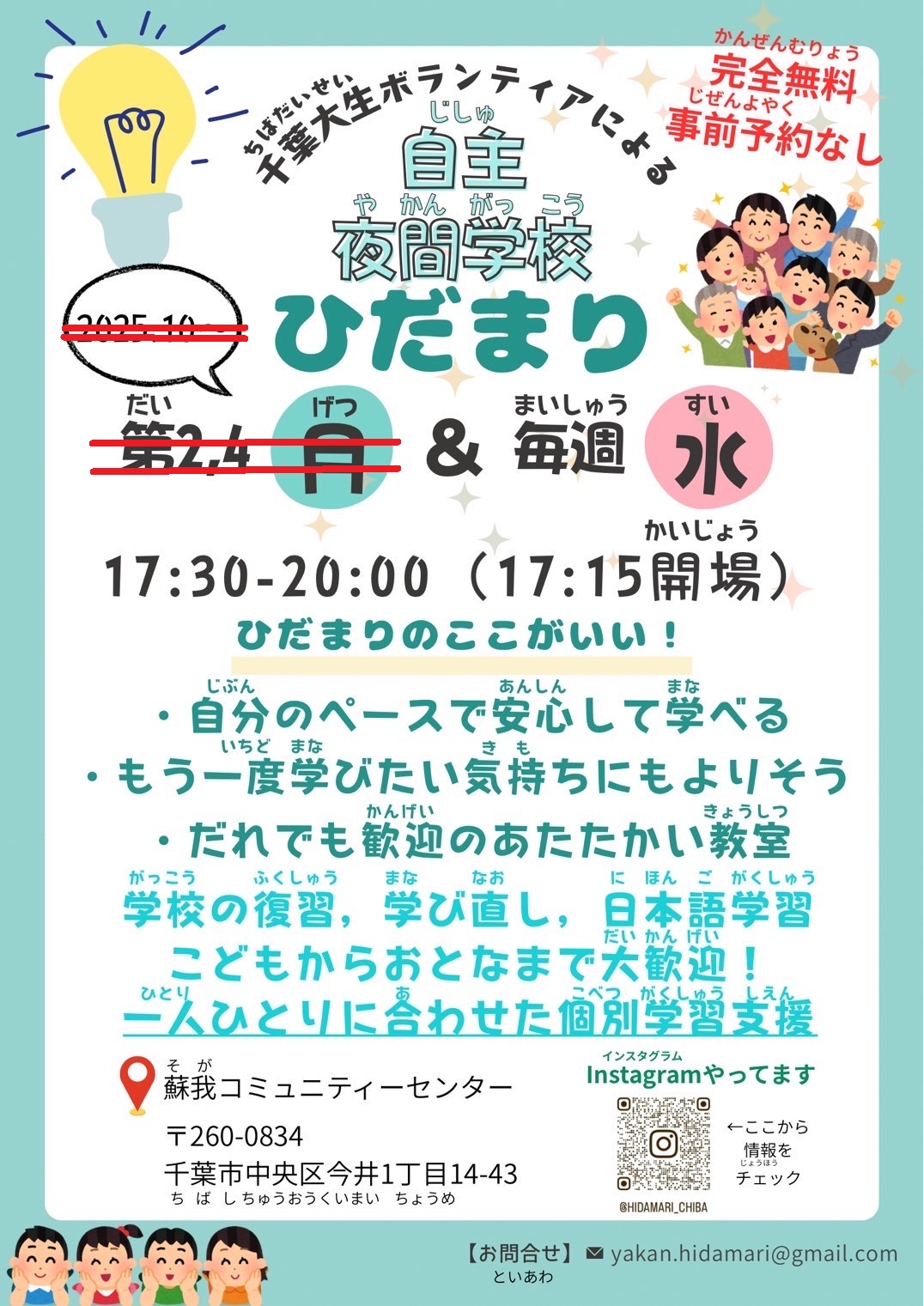 かんぜんむりょう!よやくもいりません! ちばだいがくのがくせいボランティアといっしょにべんきょうし…