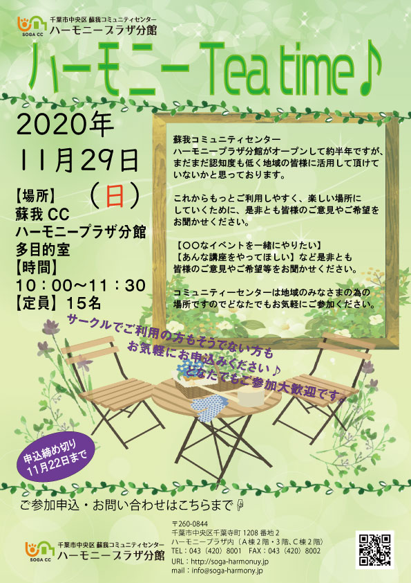 ハーモニーTeatimeを開催します。
