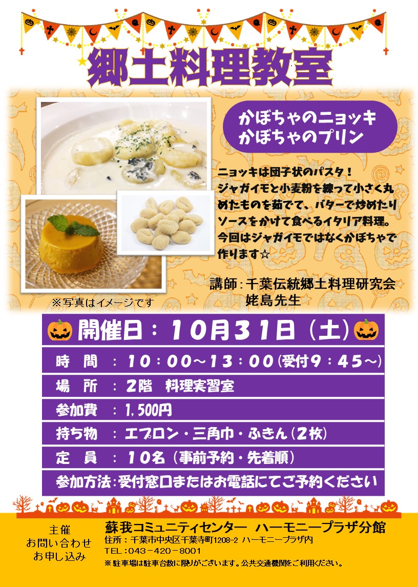 【満員御礼!!・キャンセル待ち受付中】郷土料理教室~かぼちゃのニョッキ・プリン~