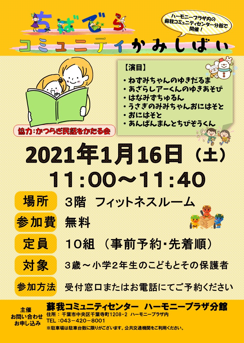 《中止》【1月開催】ちばでらコミュニティかみしばい 2021.1.10更新