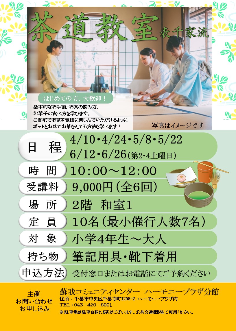 基本的なお手前、お茶の飲み方、お菓子の食べ方を学びます。