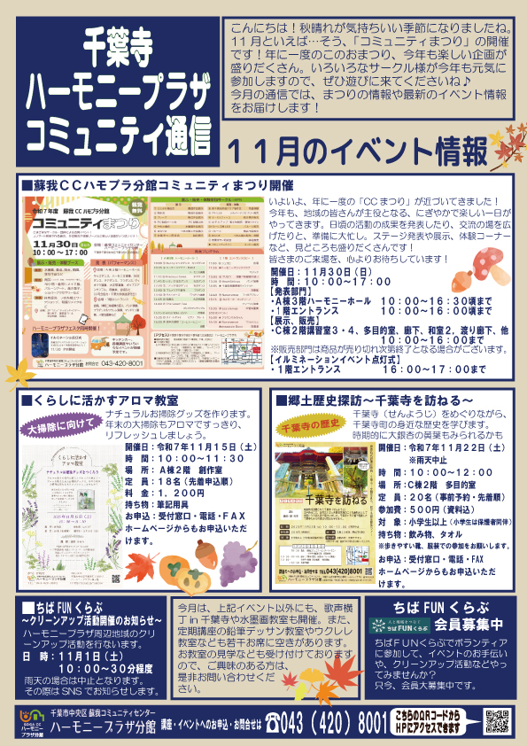 今月のハモプラ通信では、11月30日(土)に開催される「CCまつり」をご案内しています🎉