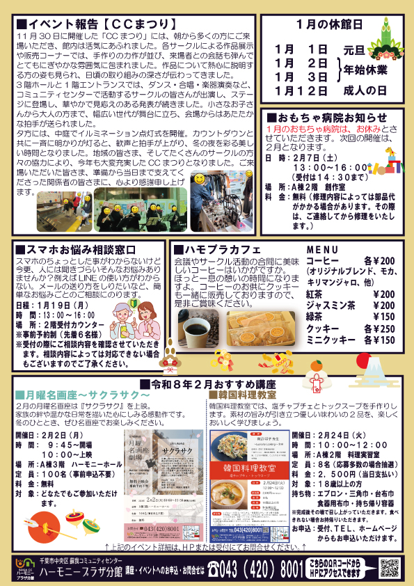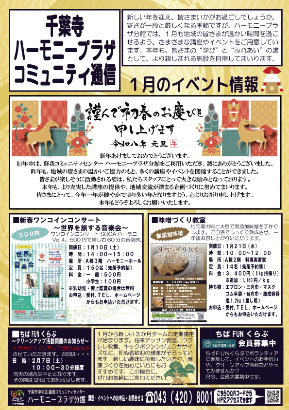 今月のハモプラ通信では、新春の1月開催の講座やイベント情報を掲載しています。