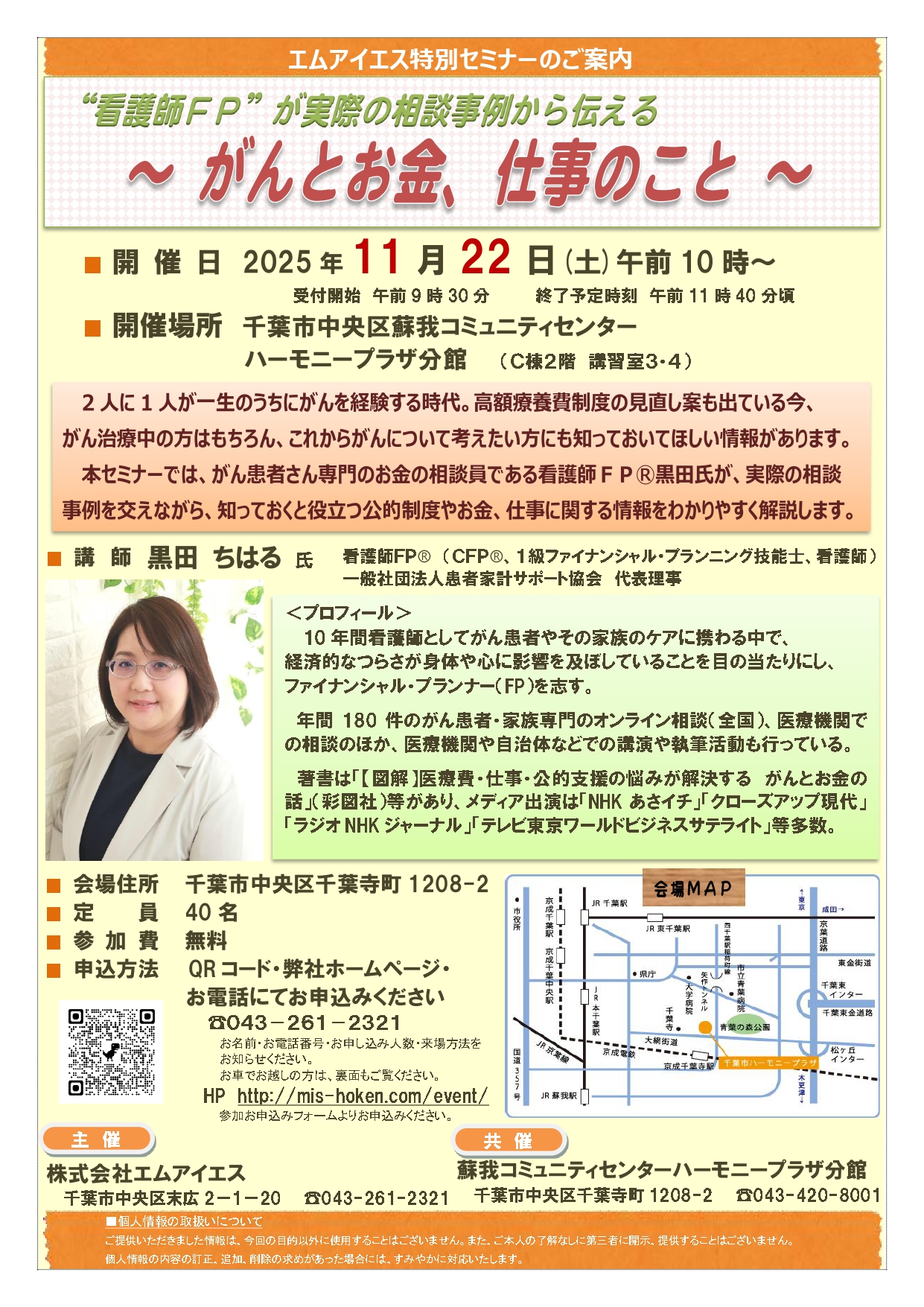 【11月22開催】健康講座~がんとお金、仕事のこと~