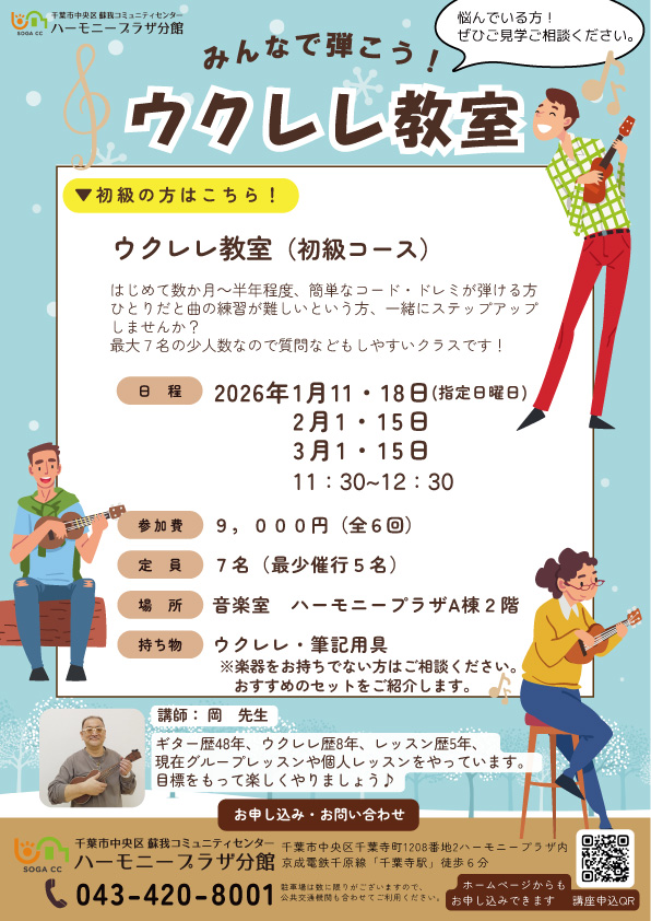 キャンセル待ち受付中【R8年1~3月開催】ウクレレ教室(初級コース)