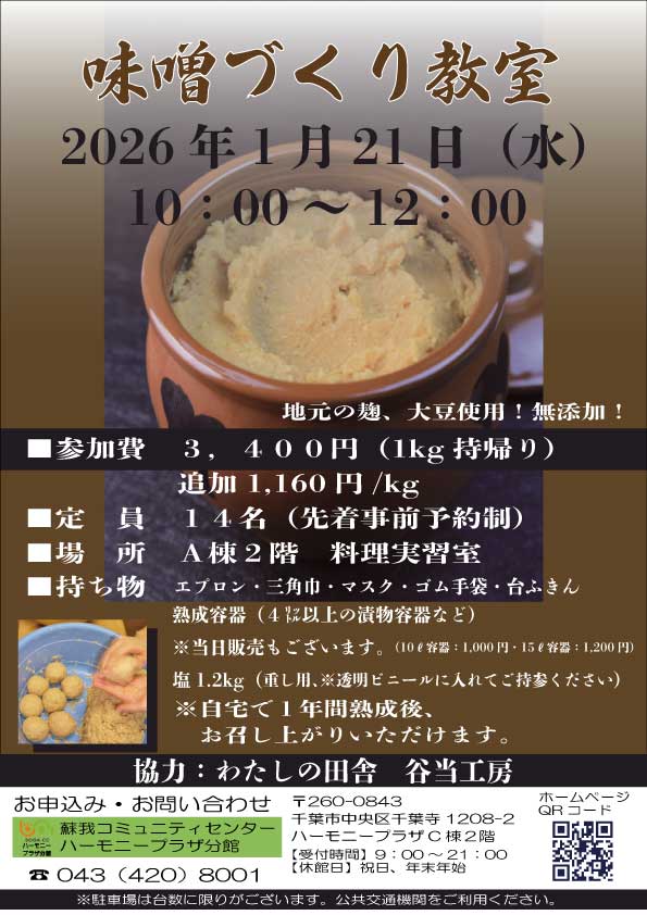 地元産の糀、と大豆を使用した無添加味噌を作ります! ご自宅で1年間熟成後、お召…